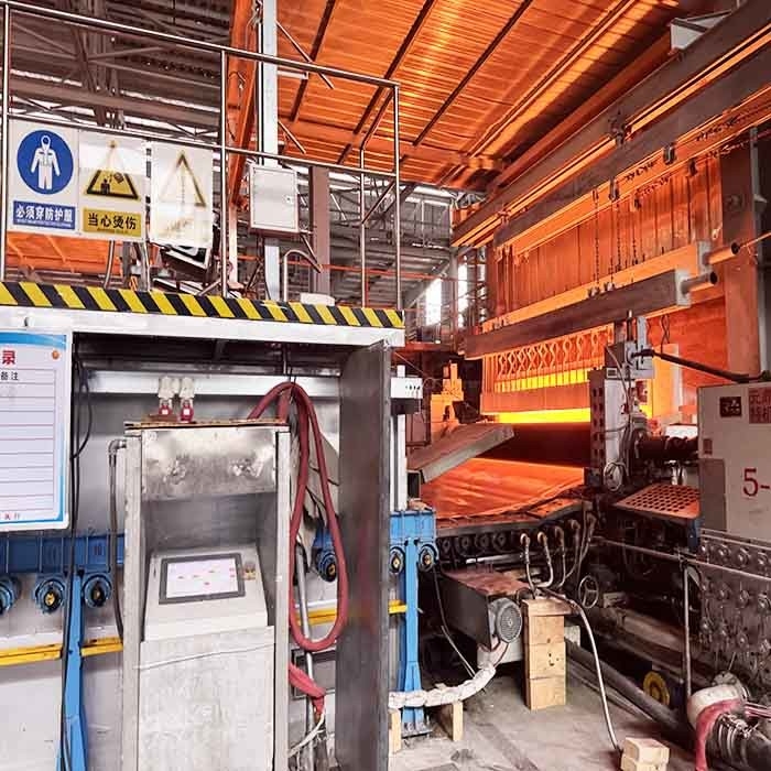 유리 액체는 용융로의 오버플로우 포트에서 립 브릭을 통해 상부 및 하부 롤러 사이의 공간으로 흐릅니다. 용융된 유리는 상부 및 하부 롤러에 의해 유압식으로 늘어나 고정된 모양, 특정 두께 및 표면에 특정 패턴이 있는 평판 유리가 됩니다. 형성된 유리 스트립은 보조 롤러 및 전환 롤러 플랫폼을 통해 어닐링을 위해 어닐링로로 운반됩니다.